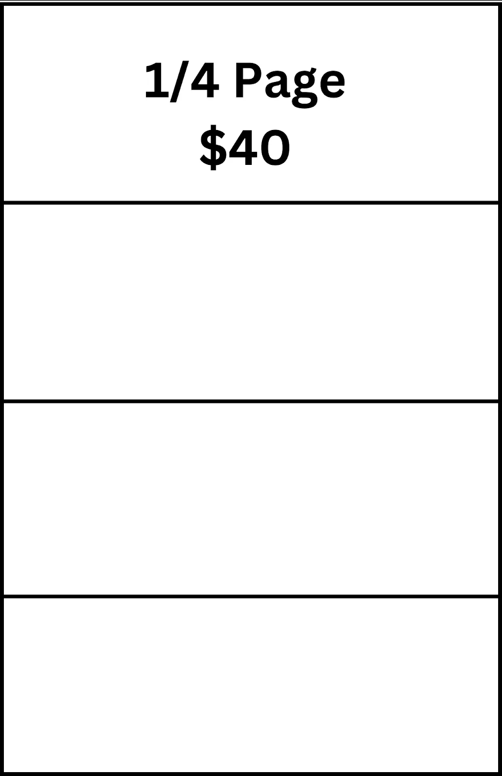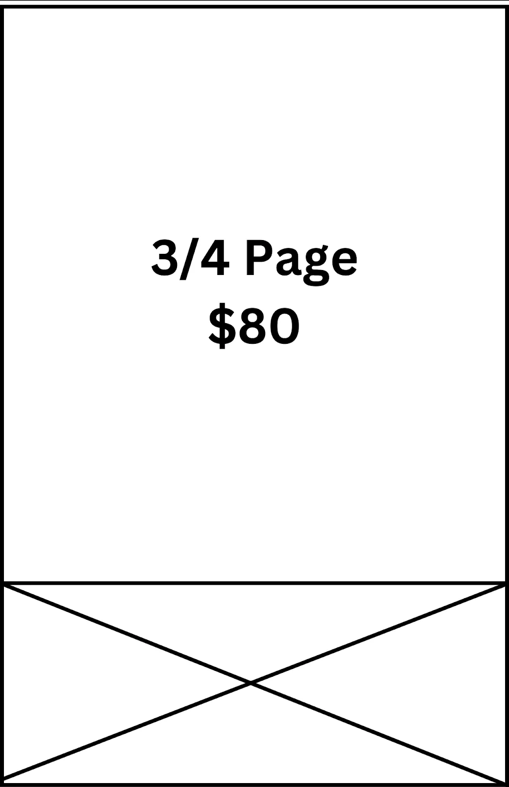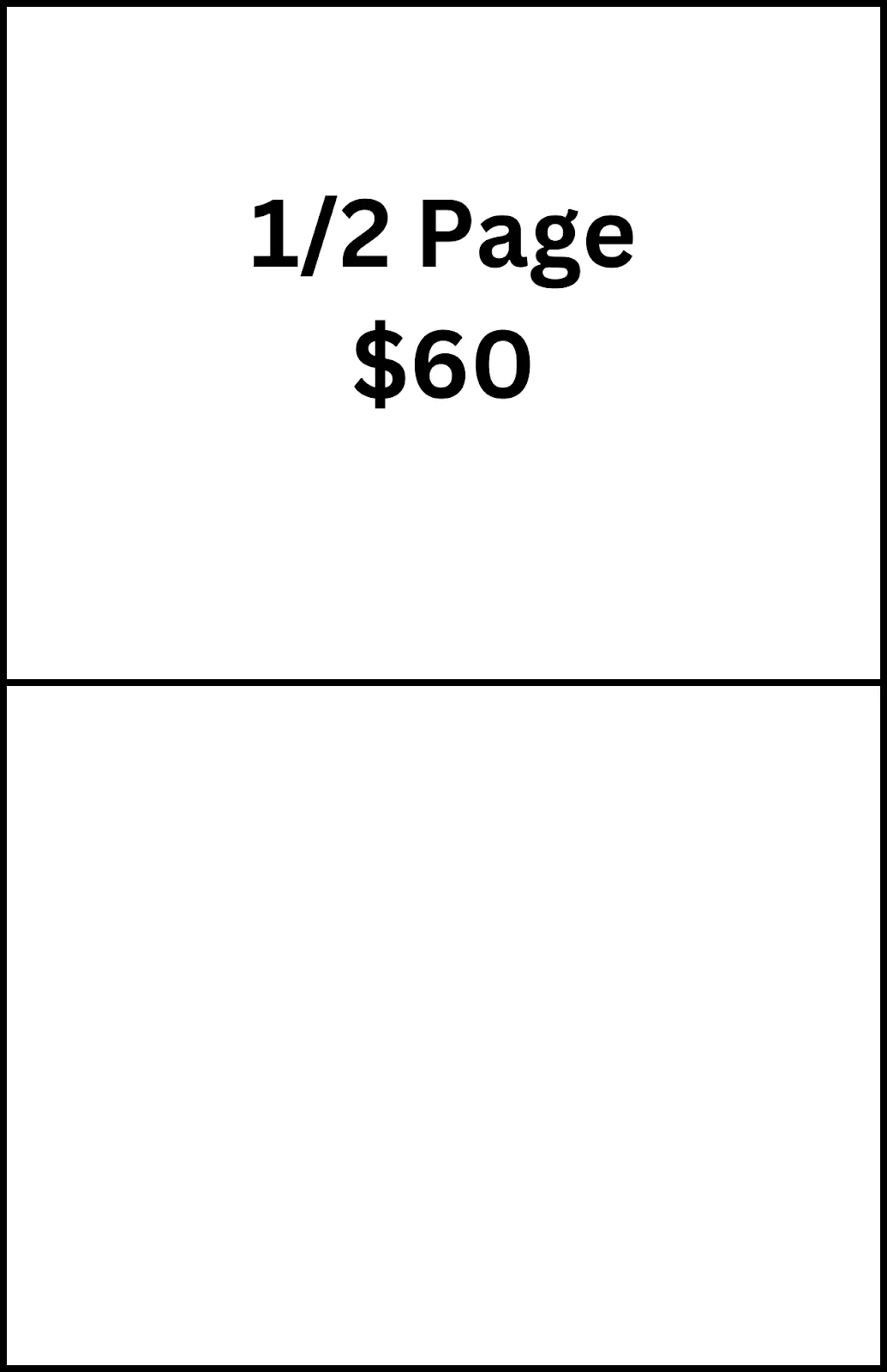 Please reference the chart below for information regarding the size (8.5x11 page folded in half) and cost for each individual space: